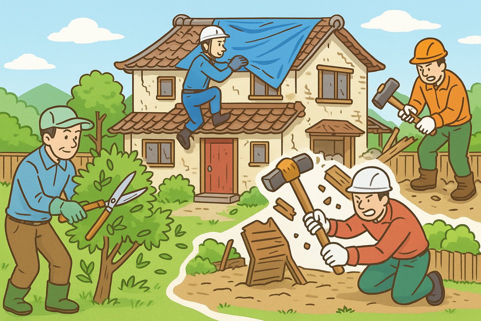 大阪は湿気が多く、台風や豪雨による建物へのダメージが発生しやすい地域です。 定期的な点検と早めの修理・季節ごとの剪定・草刈り・こまめな掃除を行うことで、 老朽化対策と資産保全を同時に実現できます。